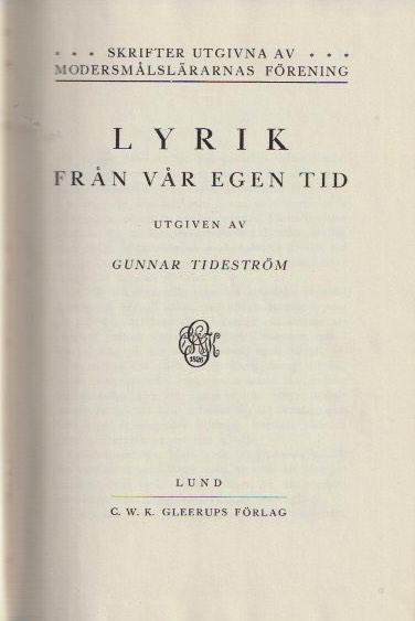 LYRIK från vår egen tid. Skrifter utgivna av Modersmålslärarnas Förening.