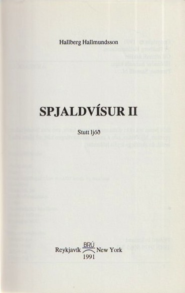 Útgefandi: Brú-Reykjavík-New York, 1991, sem var útgáfa á vegum Hallbergs. Prentun: Stensill hf. Reykjavík.